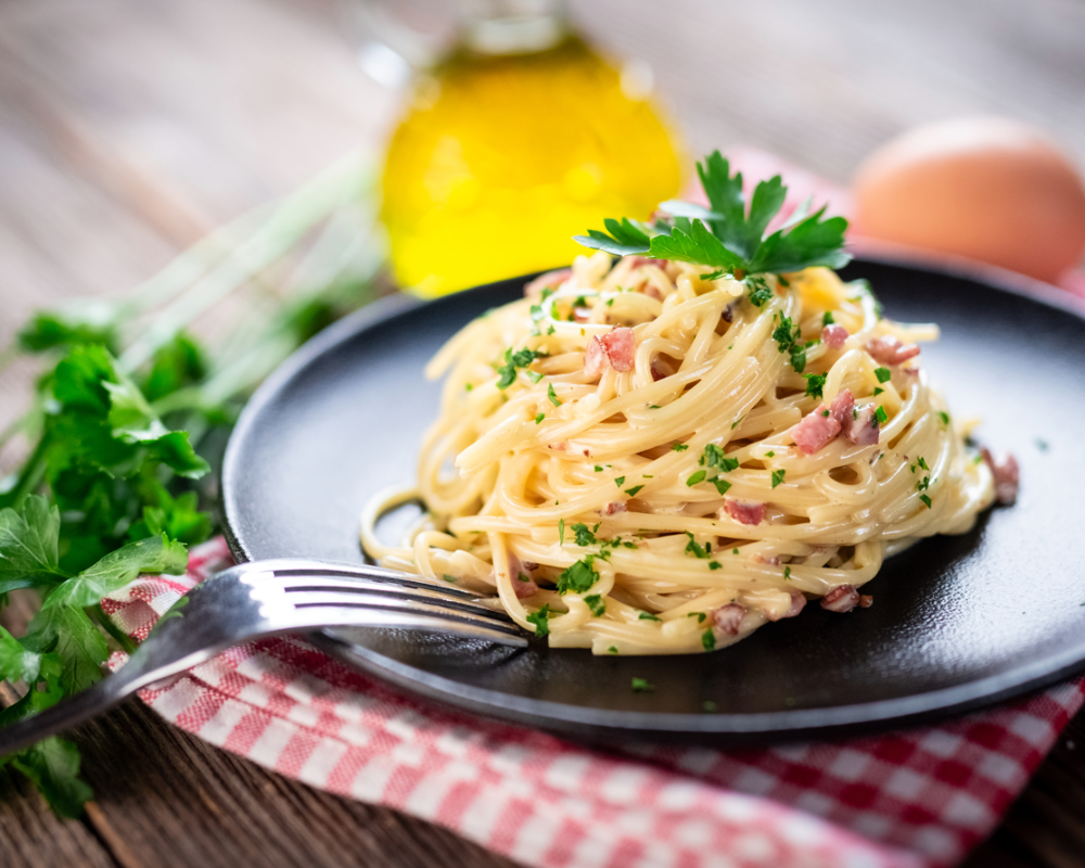 A rich and creamy pasta dish made with crispy pancetta, eggs, parmesan, and black pepper. This Italian classic is indulgent and velvety, offering a perfect balance of smoky and creamy flavors with every bite.