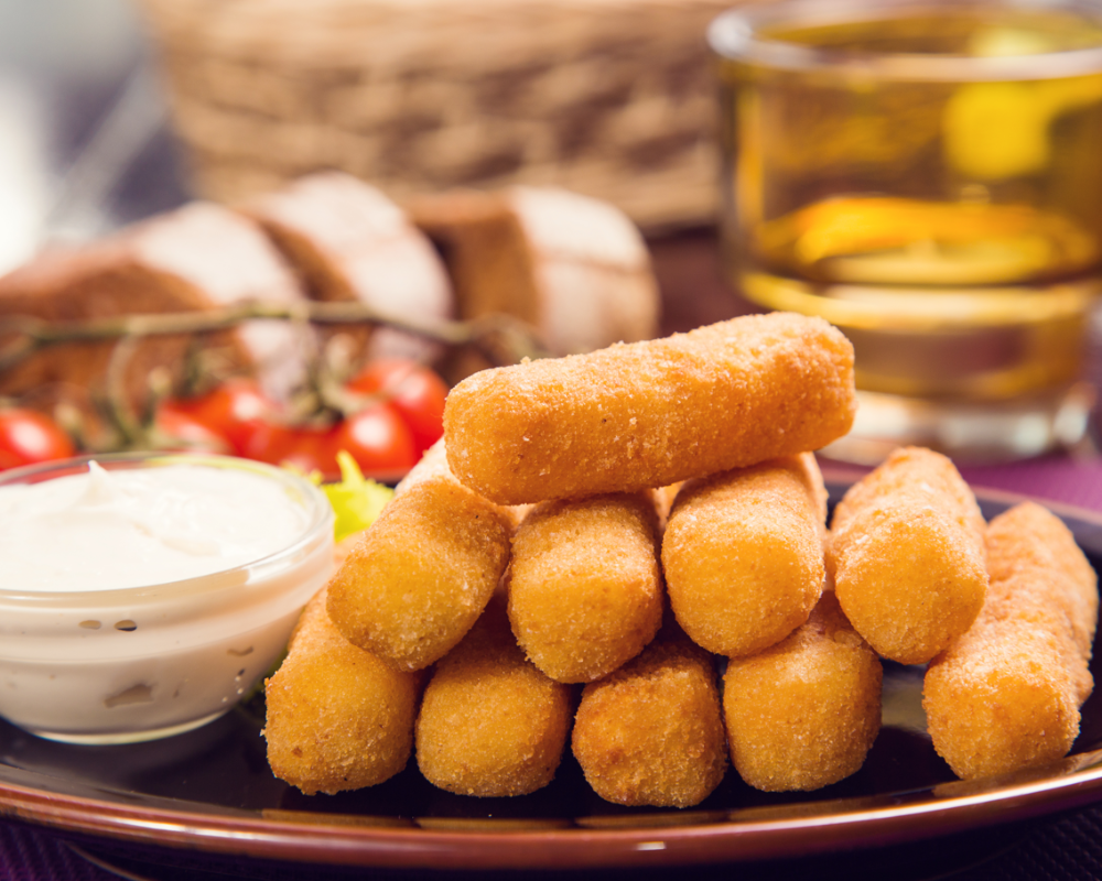 Delicious, gooey mozzarella cheese sticks encased in a crispy breadcrumb coating. Served with marinara sauce for dipping, these cheesy delights are the perfect way to kick off a meal.